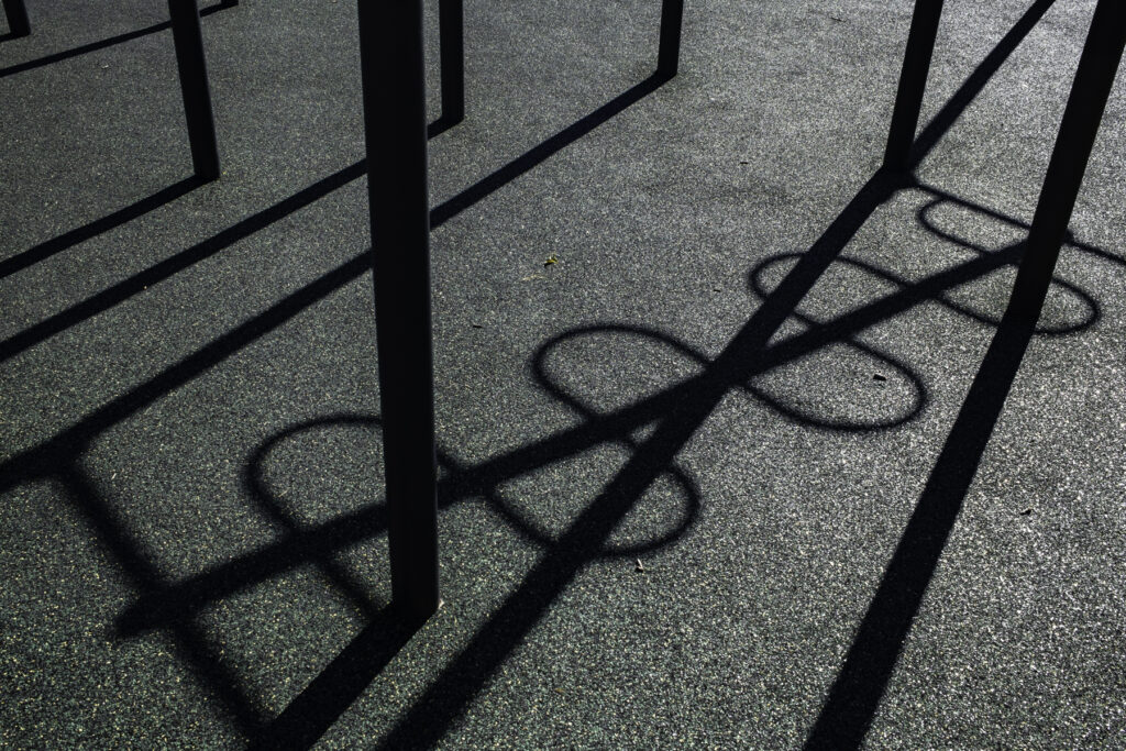 Les structures métalliques disparaissent presque entièrement au profit de leurs ombres.