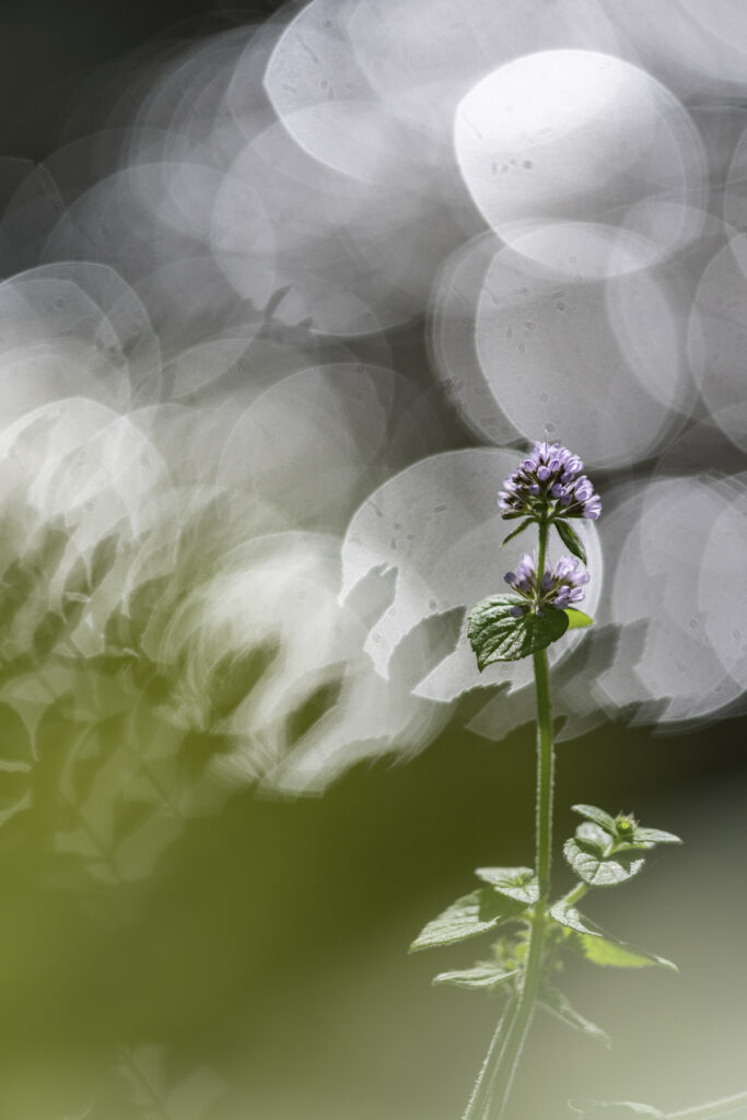 En entrant sur le sentier, j’aperçois une petite fleur isolée. La lumière filtre joliment autour d’elle. Je tente une photo.