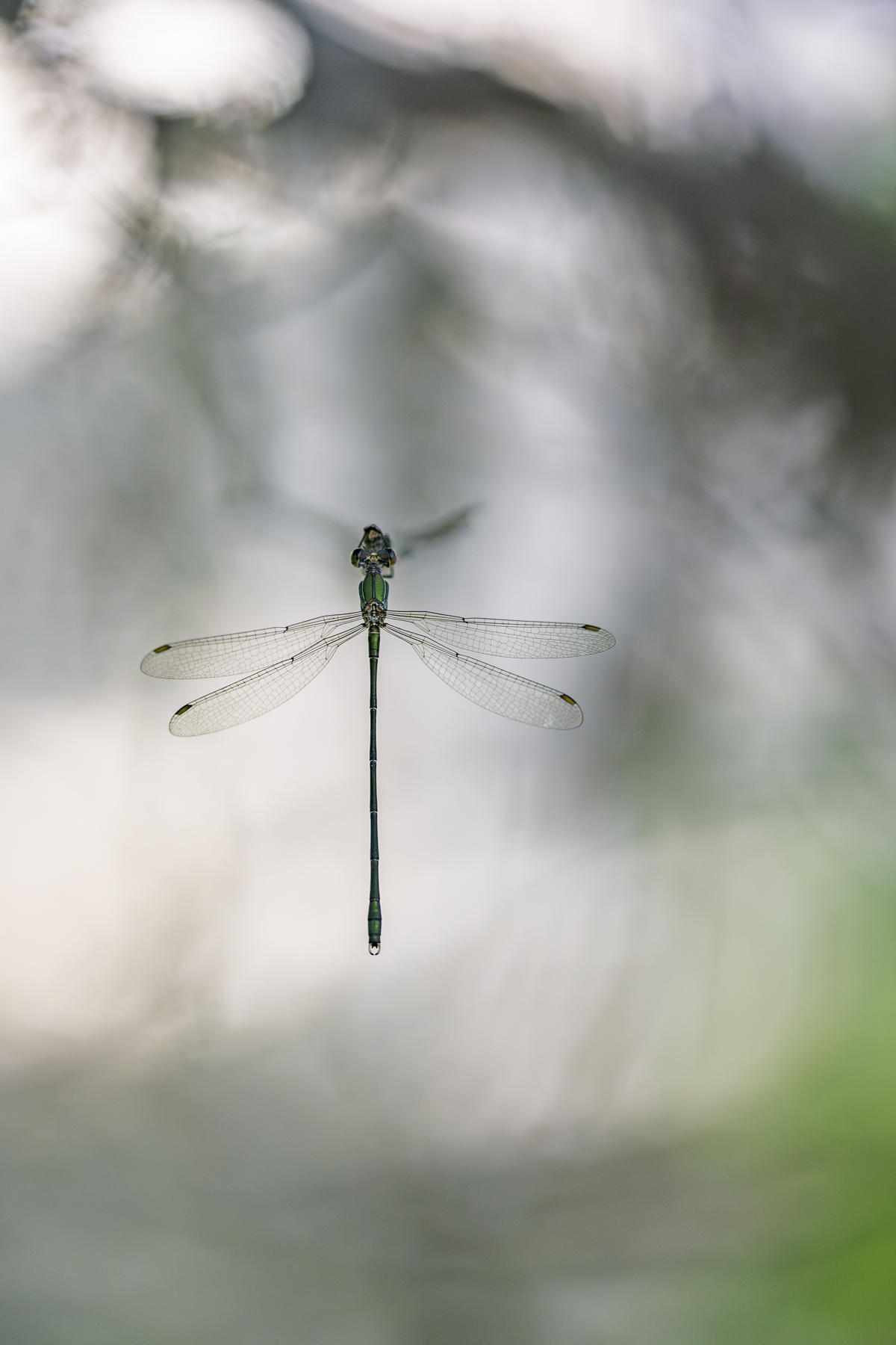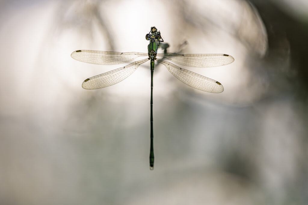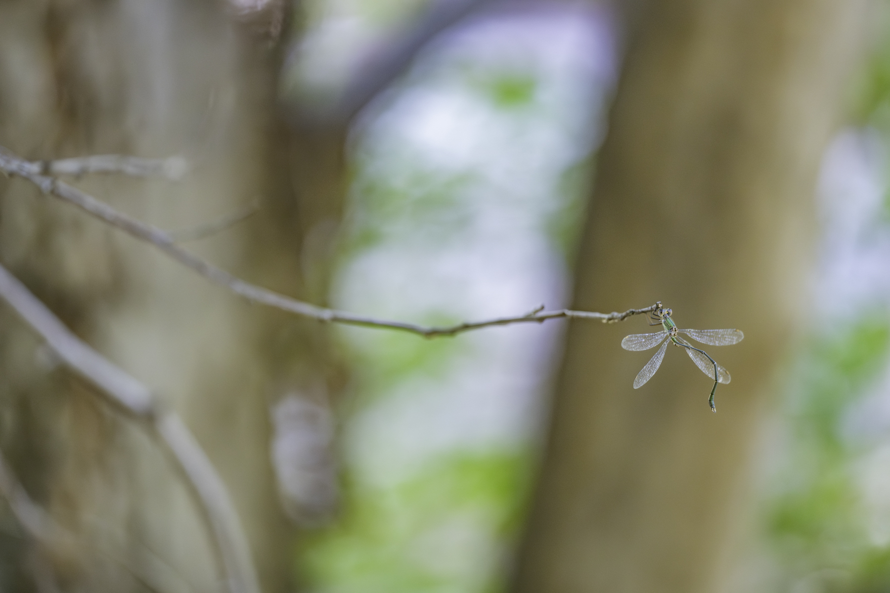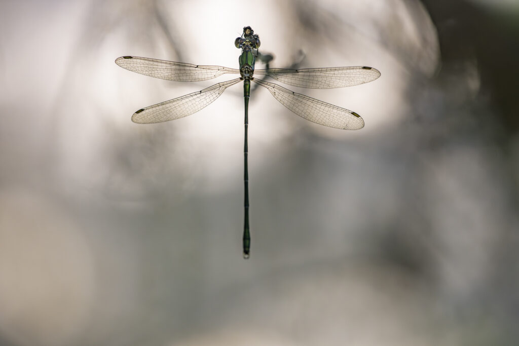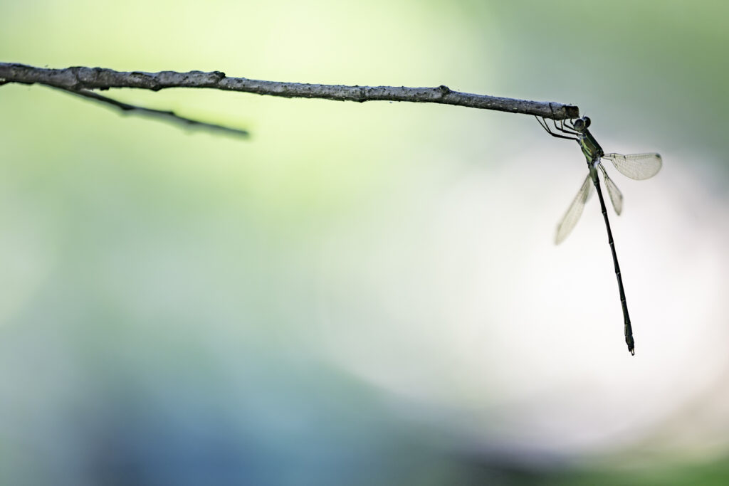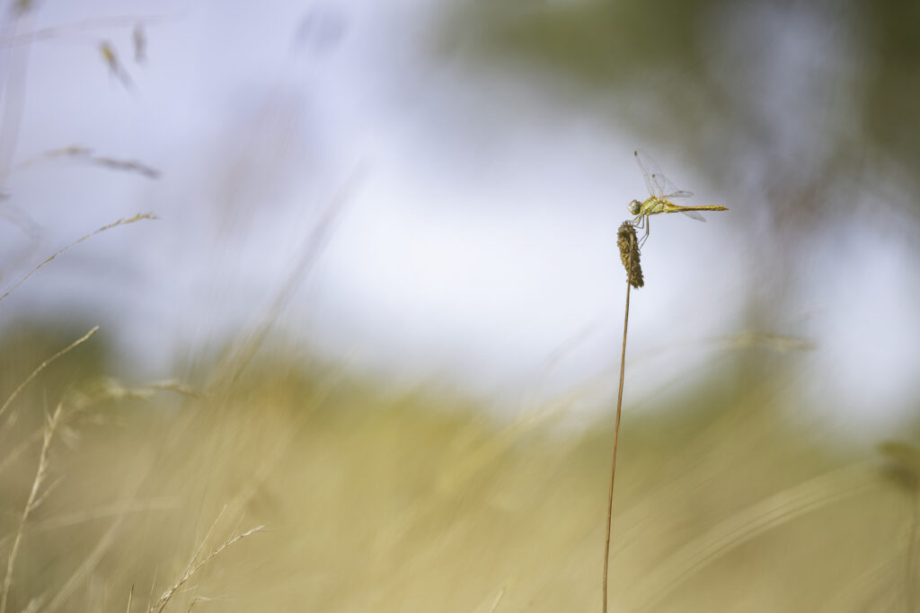 Dans une petite clairière, j’observe le va-et-vient des libellules. Elles quittent leur perchoir pour fondre sur de minuscules proies avant de revenir exactement au même endroit.